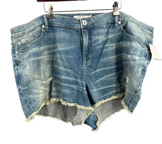 Torrid denim shorts, size 28. Light wash with whiskering, distressed details, and raw frayed hem. 99... Show more