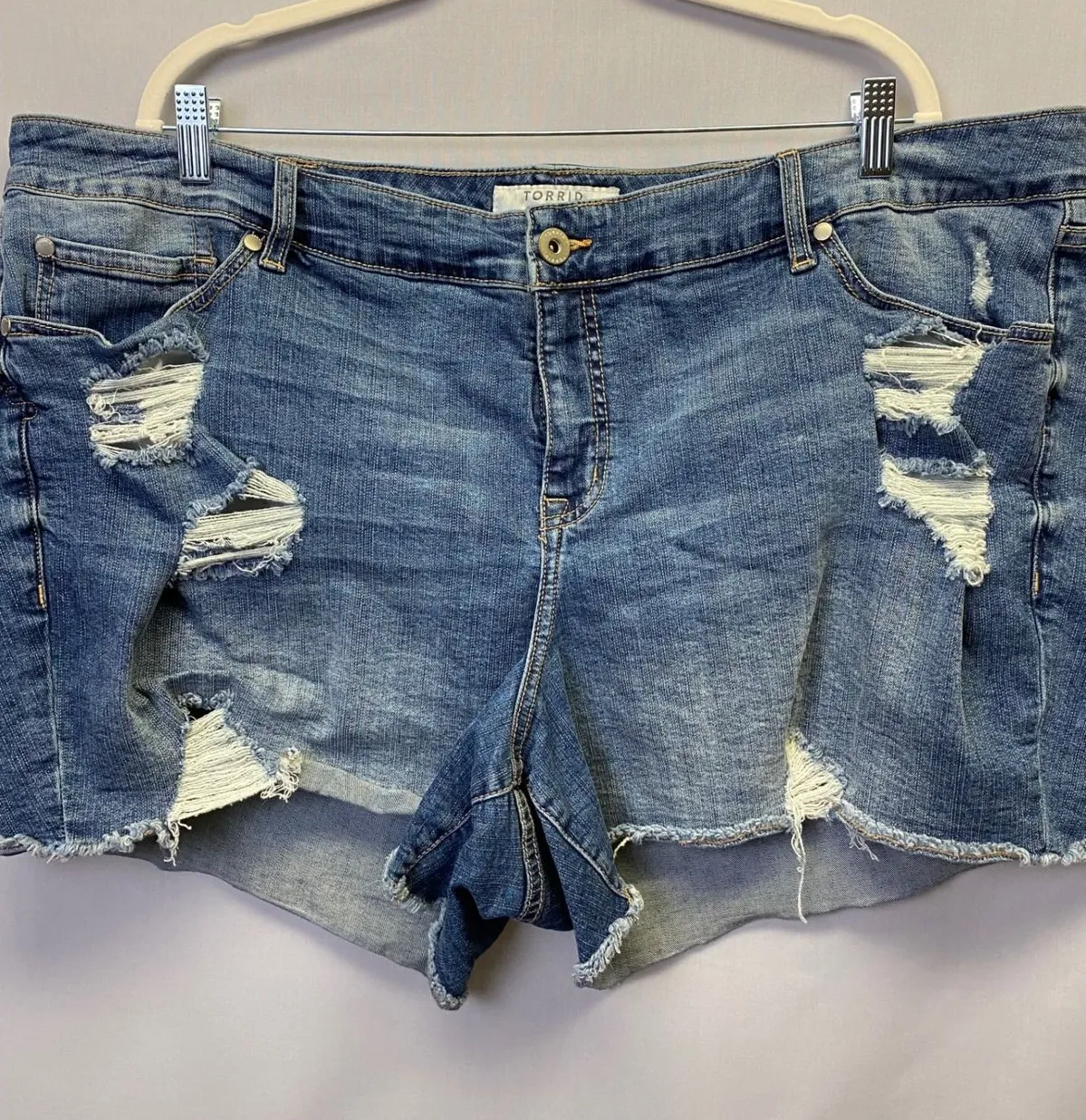 Torrid denim shorts featuring distressed detailing and a relaxed curvy fit. Easy, comfortable cut wi... Show more