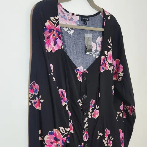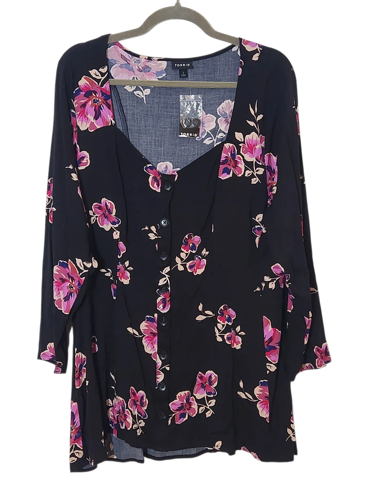 Torrid women's top featuring a vibrant floral design, button-up front, and a cute neckline. Same-day... Show more