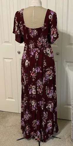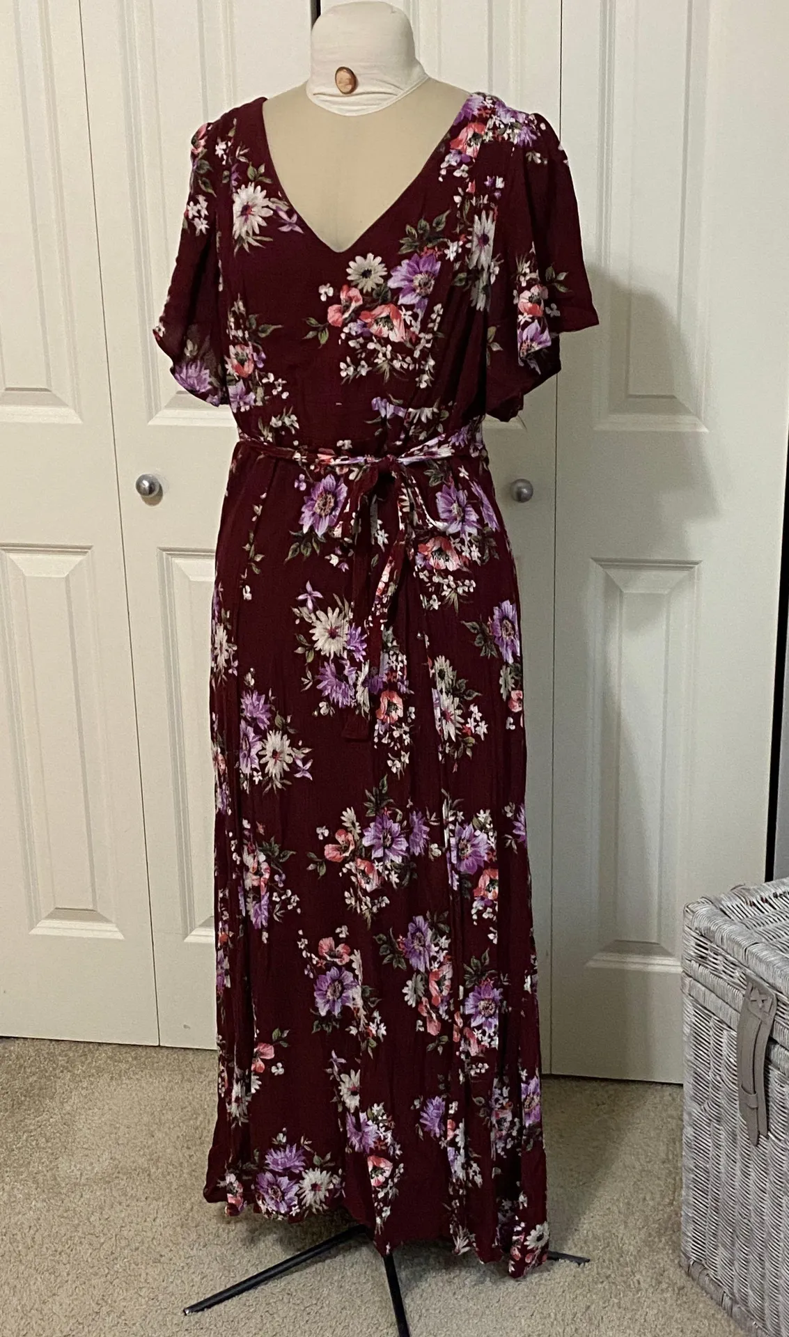 Maroon floral maxis dress with tie. Size 00 (XL)