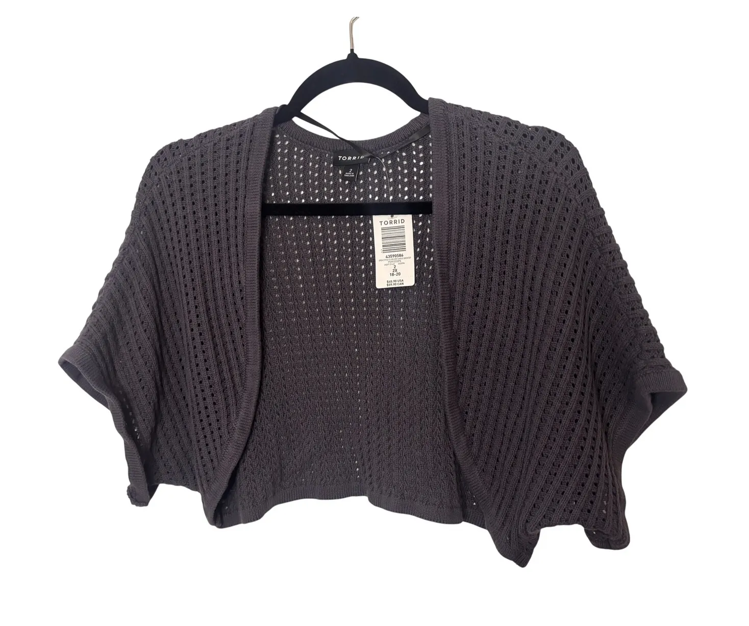 Elevate your layering game with this Torrid open knit stitch bolero shrug sweater. Designed to add a... Show more