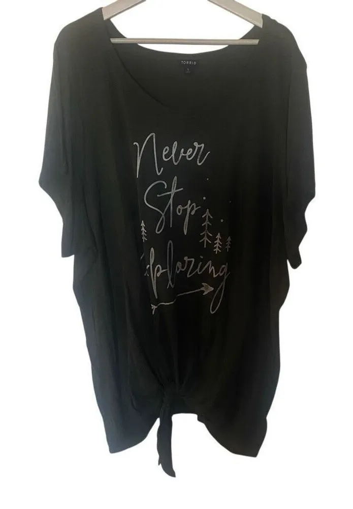 Torrid green short sleeve size 5XL Never stop exploring tie bottom