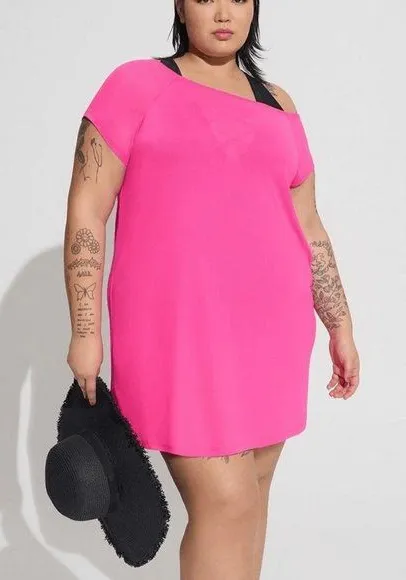 Torrid Hot Pink Glo Mesh Off The Shoulder Swim Coverup Dress Size 0 Large NWT Brand new with tags,... Show more