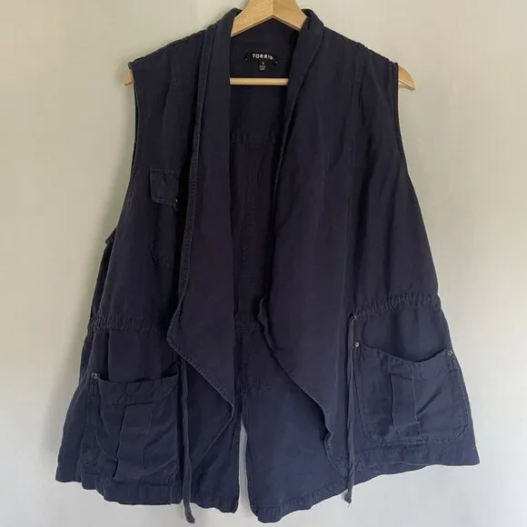 Elevate your casual wardrobe with this Torrid linen rayon women's blue denim vest in size large. Per... Show more