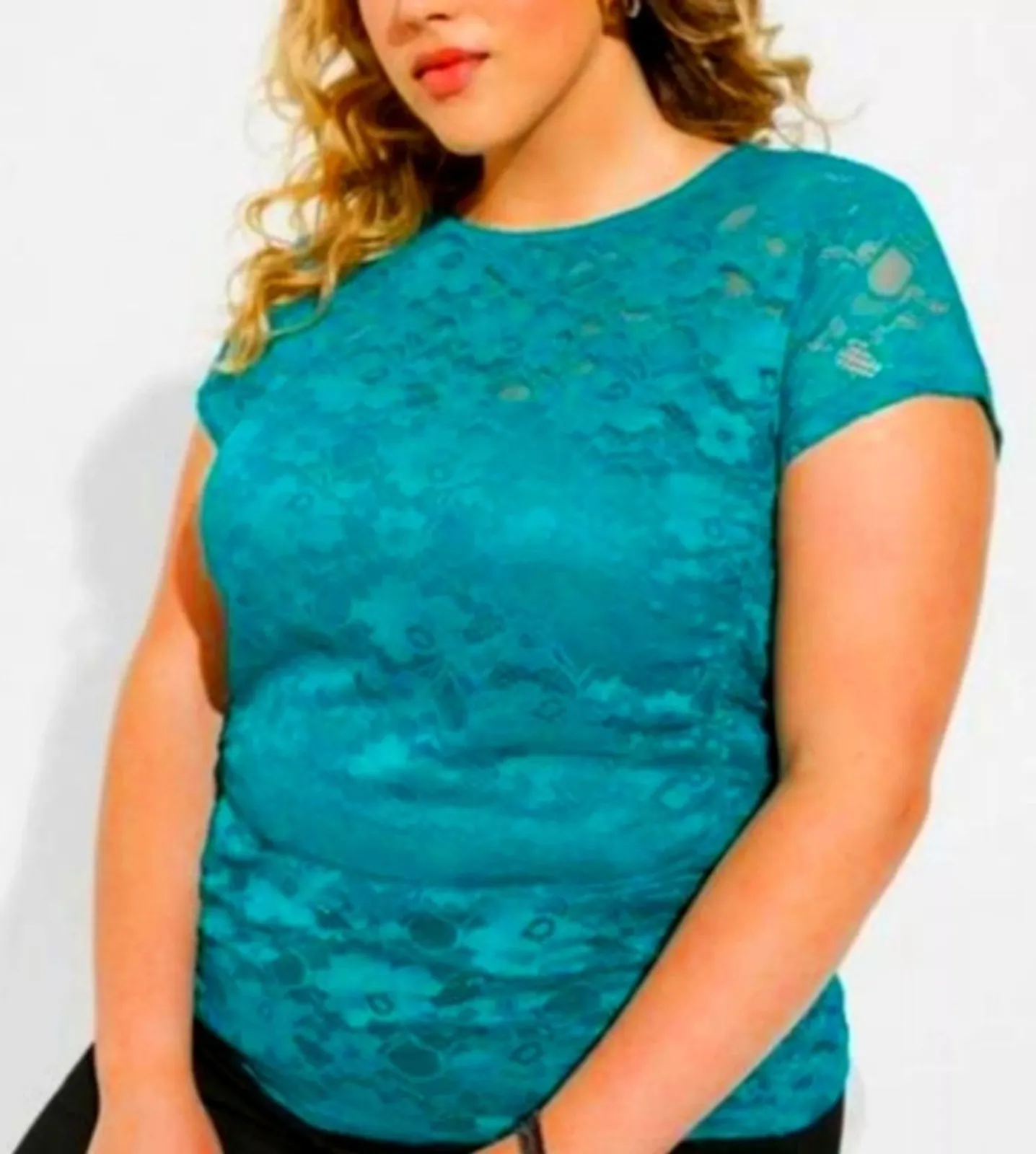 Brand new with tag! Torrid aqua lace stretch Top in women's plus size 1. Short sleeves, cinched side... Show more