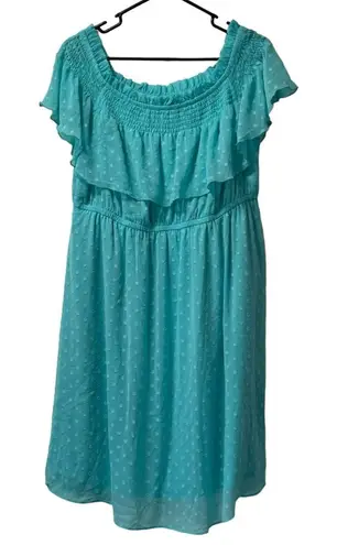 This dress is preowned and in excellent condition! Torrid Off-Shoulder Smocked Mini Skater Dress... Show more