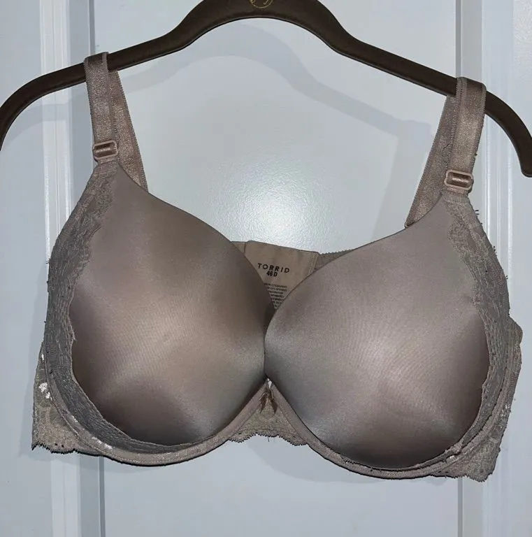 *minor marks on both cups, could come out with TLC. missing 2 top bra fastener clasps as shown in picture. some pilling on edges. This Torrid Perfect TShirt Full Coverage Underwire Padded Plus Size Lace Floral Bra in size 46D is the ultimate blend of comfort support and confident style made specifically for curvy bodies. Designed by Torrid the leading brand in plus size fashion this bra delivers a smooth flattering fit that feels just as good as it looks. If you are searching for a reliable everyday bra with elevated feminine details this Torrid lace floral bra is a must have staple. Crafted with full coverage cups and supportive underwire this Torrid Perfect TShirt bra offers excellent lift shaping and security for plus size busts. The lightly padded cups create a smooth seamless look under T shirts sweaters dresses and fitted tops making it perfect for daily wear work wear lounge wear or going out looks. This bra is designed to disappear under clothing while still delivering that snatched supported feel. The delicate lace floral overlay adds a soft romantic vibe without sacrificing comfort. It gives main character energy while still being practical and wearable. Think cozy chic meets confidence boost. The lace detail elevates the look giving subtle Y2K soft glam vibes while staying timeless and classy. Perfect for anyone building a cute but functional lingerie wardrobe.