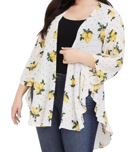 Torrid white kimono duster cardigan featuring a playful black polka dot pattern interspersed with vi... Show more