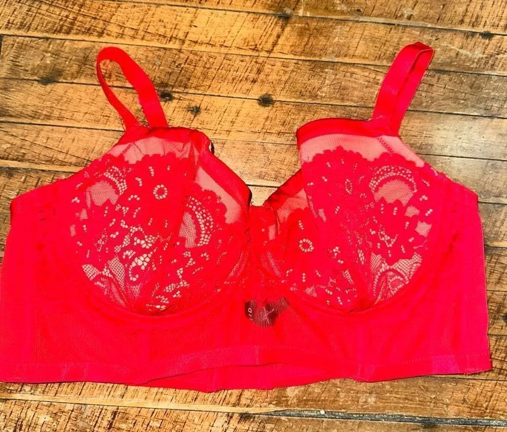 Torrid bustier, red, lacy, pinup girl, sexy bra. In good, used condition. From a pet and smoke free... Show more