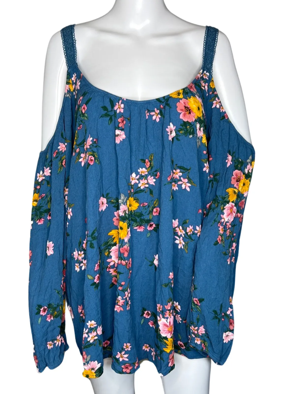 Torrid Shirt Womens 4X Blue Yellow Floral Flowers Cold Shoulder Cutouts Cottage Women's Size 4X Lo... Show more