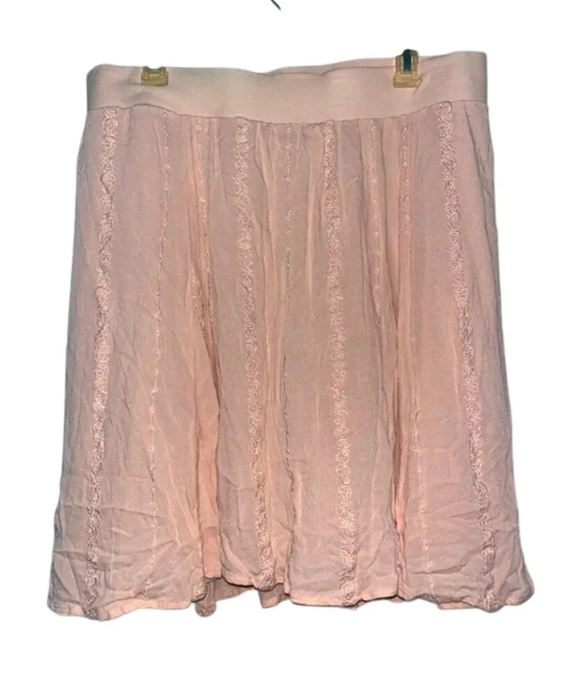 Feminine charm meets effortless style in this blush-toned A-line skirt. Intricate embroidery cascade... Show more
