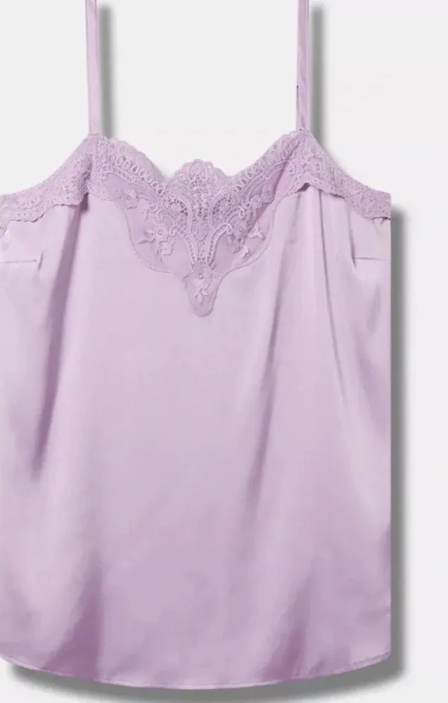 This elegant Torrid Sophie satin cami in a rich purple hue is trimmed with delicate lace, making it... Show more