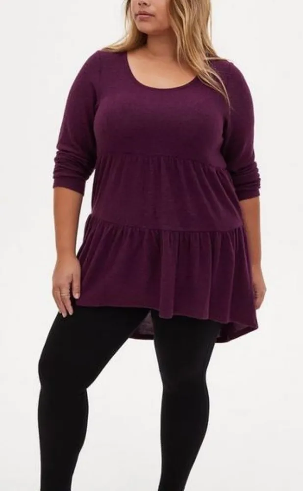 Torrid Super Soft Plush Scoop Neck Tiered Babydoll Top in Potent Purple Size 1X Excellent Used Co... Show more