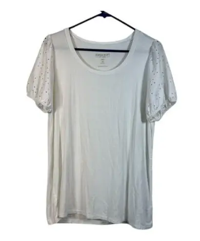 Torrid Super Soft White Knit Eyelet Puffy Sleeves Size 00 EUC #VEG-0714 Size M - $29 - From Vir