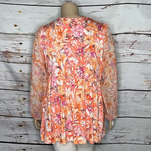 Torrid Size 3 Pink Floral Print Super Soft Knit Top. Split V-Neckline. Lace Trim. Chiffon, Long Slee... Show more