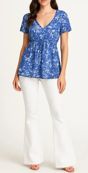 Torrid Tunic Lace Top in Blue and White ~ pretty floral allover pattern in a lace semi-sheer fabric... Show more