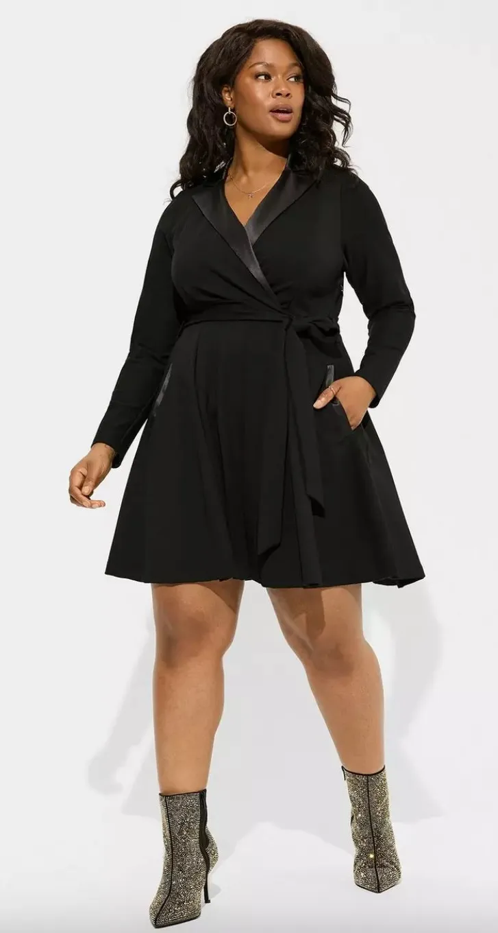 Torrid Dress Womens Size 24 Black Tuxedo Skater Satin Lapel Wrap Belt Mini Torrid Tuxedo Skater Dre... Show more