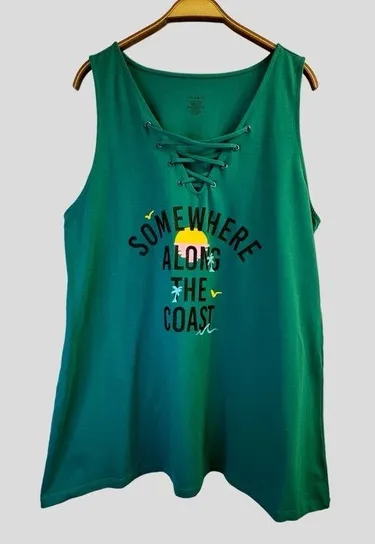 "Upgrade your summer wardrobe with this must-have Torrid Tank Top in Green with ‘Somewhere along the... Show more