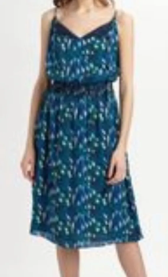 Tory Burch Shelbee Printed Silk Georgette Dress Knee Length with Navy Abstract floral print 100% Si... Show more
