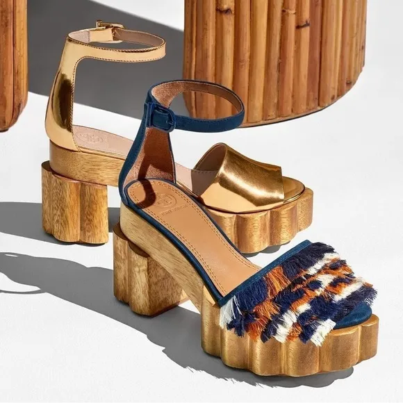 Tory Burch Alma 95 Suede Platform Sandals Features: Suede with colorful fringed threadwork Adjustab... Show more