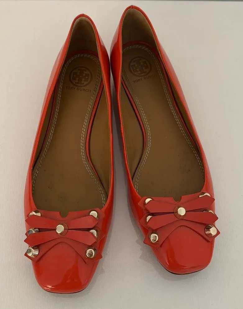 Tory Burch Aurora Flat Patent Leather Poppy Red Shoes Size 8 In very good condition, minor wear on i... Show more