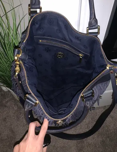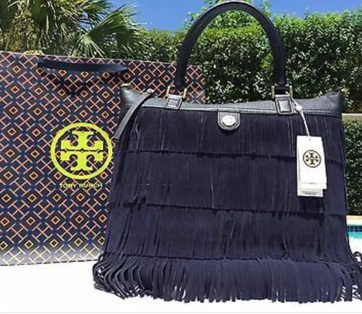 Tory Burch oversized leather handbag with suede tassels/fringe -Zipper top -zipper inside -2 pockets... Show more
