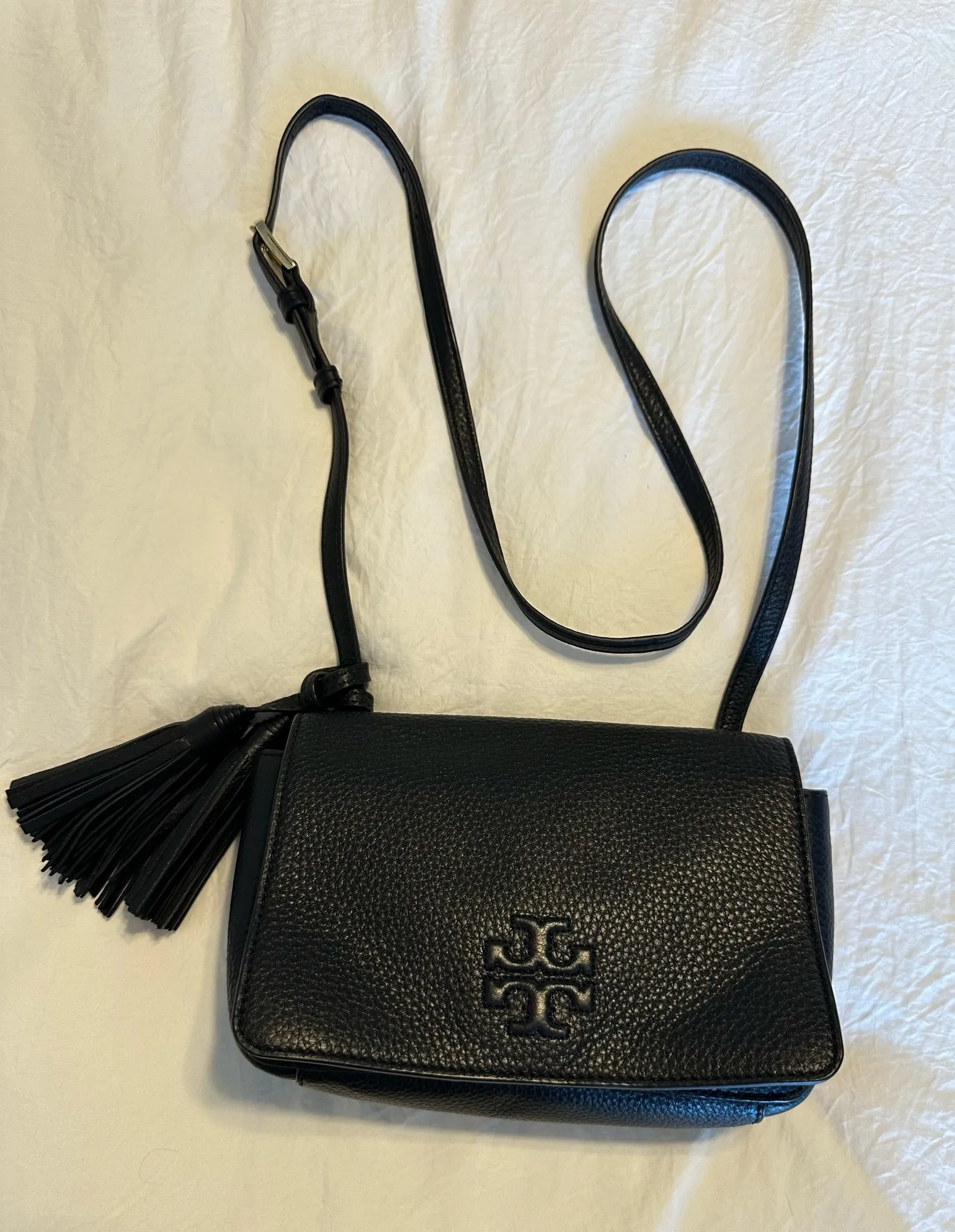 Never used Comes with dust bag Black leather purse with tassel detail