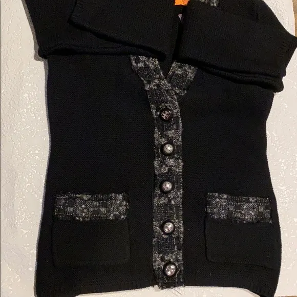 5 button, size S, black merino wool, tweed trim cardigan “Aurele” from Tory Burch. Beautiful chain-m... Show more