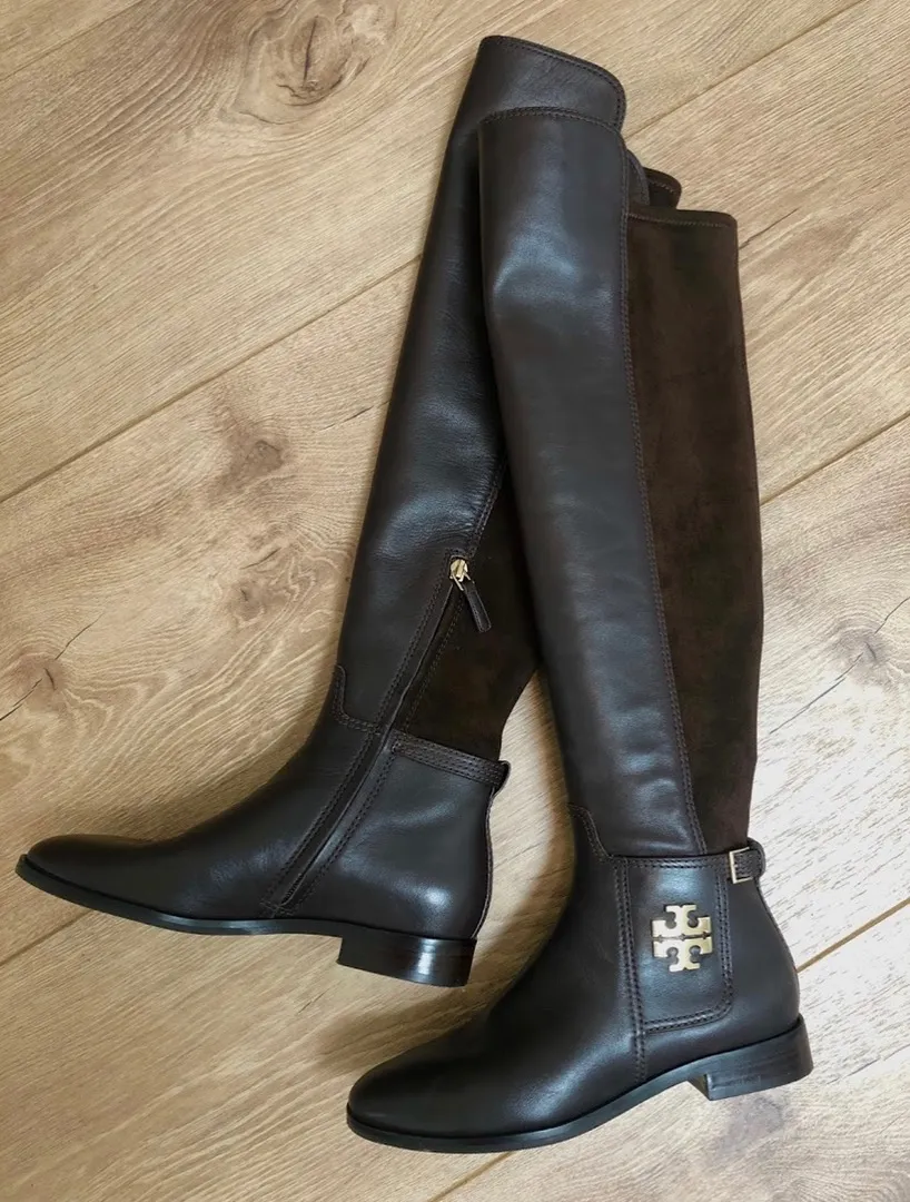 Tory Burch Boots. Tory Burch Wyatt Over-the-knee calf leather/stretch suede boots. Burnt Chocolate c... Show more
