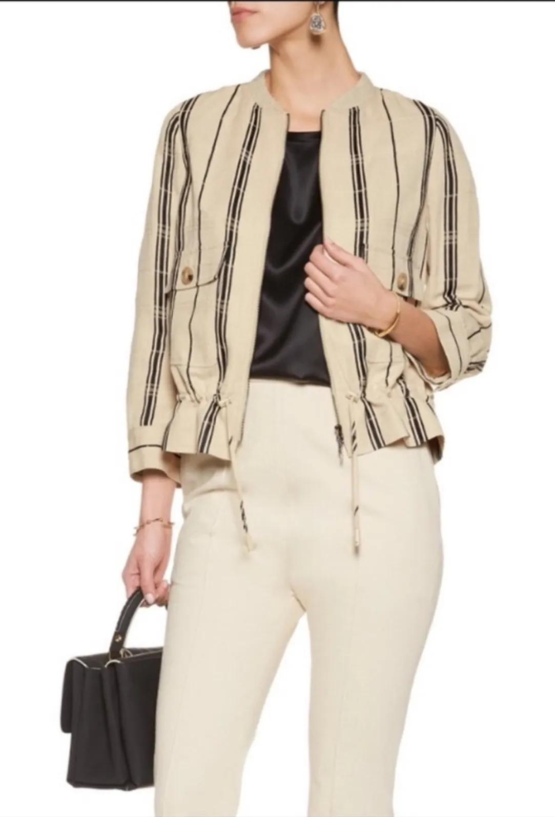 Excellent condition Pit to pit: 19" Shoulder to hem: 23" Tory Burch “Debbie” striped linen zip-fr... Show more
