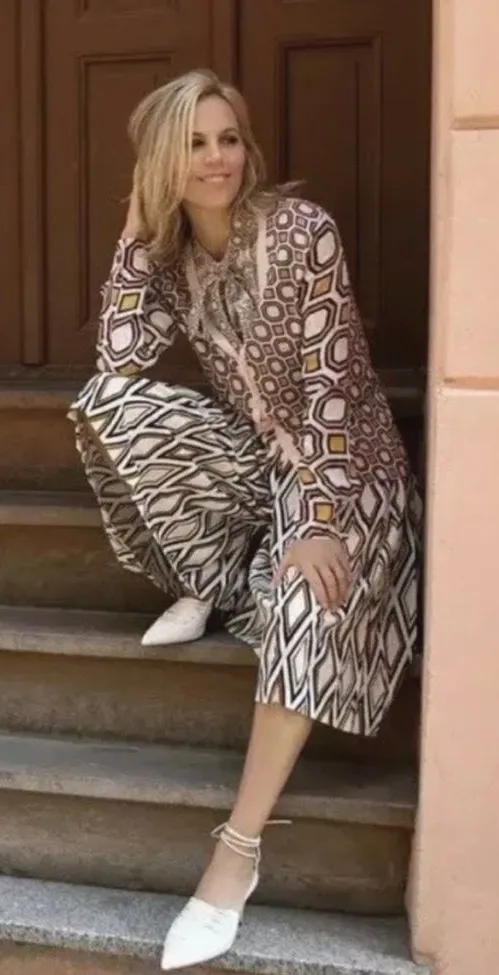 The Faye wide leg Culotte trousers features an original diamond print from our archives. Relaxed and... Show more