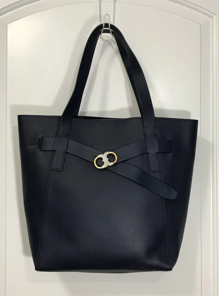 Tory Burch Gemini Link Leather Tote Bag in Royal Navy This elegant navy blue tote bag features a sty... Show more