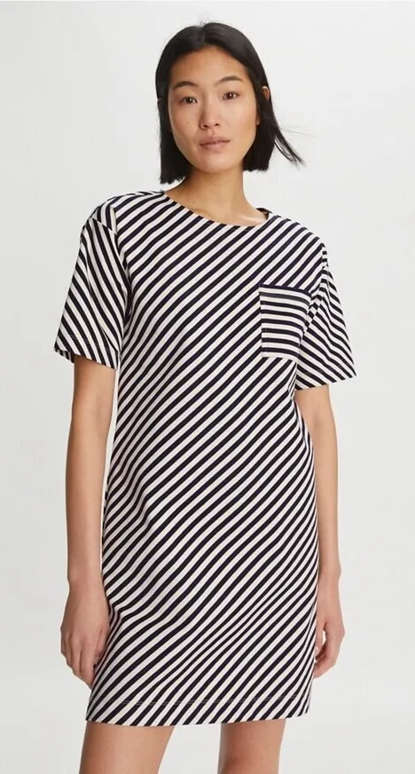 Tory Burch T-Shirt Dress Women’s size large Black and cream stripe pattern 100% cotton Front pocket... Show more