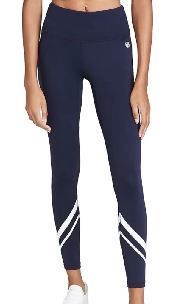 . Stylish and comfortable leggings perfect for casual wear or travel. The dark blue color and chevro... Show more