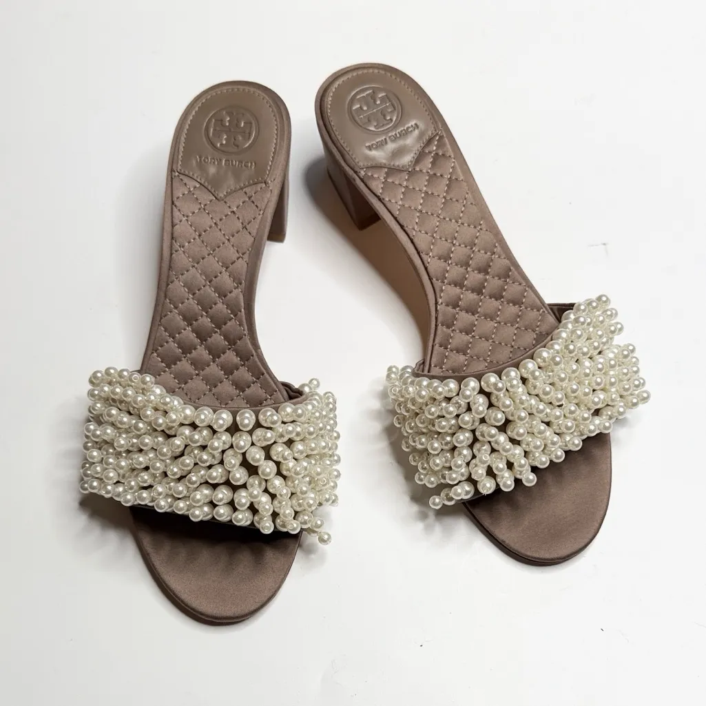Texture meets luster on our Tatiana Slide, made of satin with a cascade of resin pearls. The embell... Show more