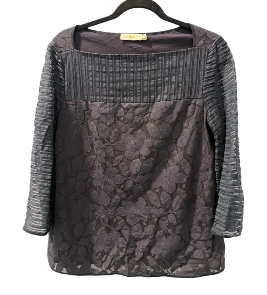 Tori Burch Lace Lined Size Medium Navy Blue Blouse Top Cotton Blend Work Women's Measurements: Ches... Show more