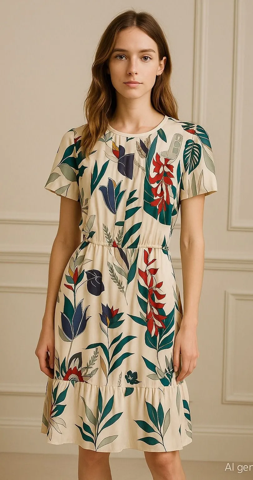 Tory Burch tropical floral print dress in lightweight 100% silk with soft polyester lining. Features... Show more