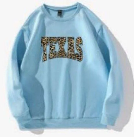 -Women’s blue crewneck with cheetah print Texas lettering -in good condition -has some pilling -sup... Show more