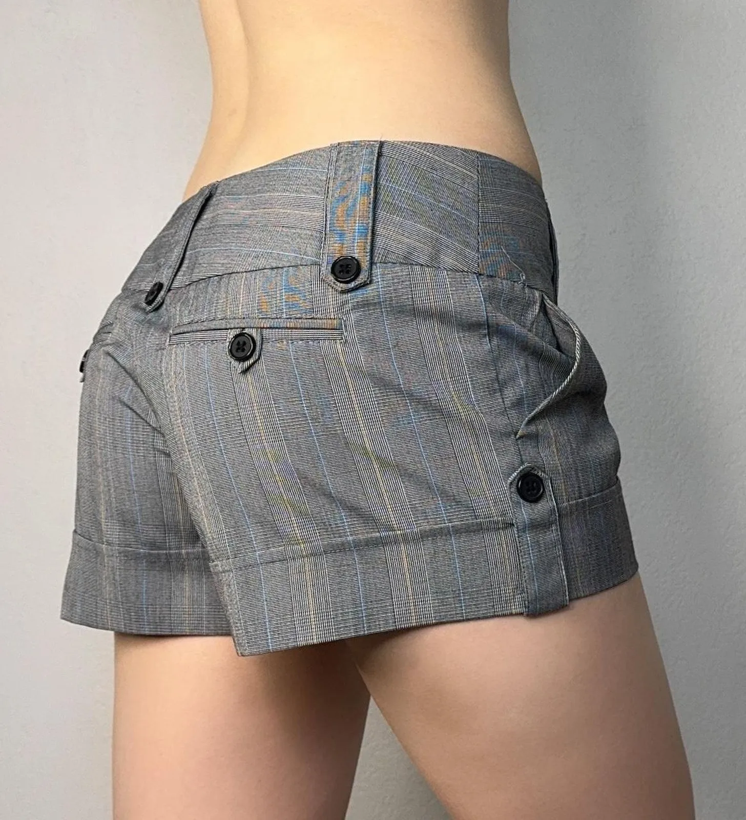 Y2K Cuffed Dress Shorts Low Rise Pleated Button Size 3, Good Condition Lines in try on photos form camera Measurements (approximate): Laying Flat not Doubled Waist: 15 1/4” Rise: 8 1/4” Inseam: 2” office siren