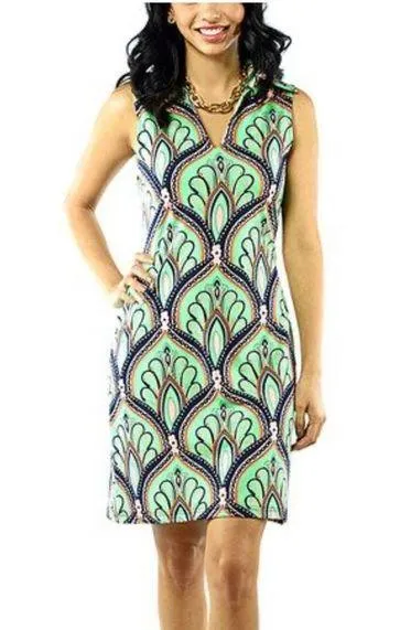 Tracy Negoshian Lotus Flower Seafoam Laila Shift Dress tropical sleeveless lg Blue - $72 - From Sara