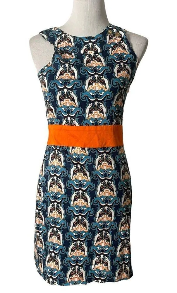 Tracy Negoshian Retro Print Short Dress Size S Orange Floral Sleeveless‎ Blue - $17 - From Raynika