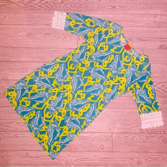 Tropical sleeveless crop sleeved women’s Hawaiian yellow green conch shell dress Size L - $59 - From Sara