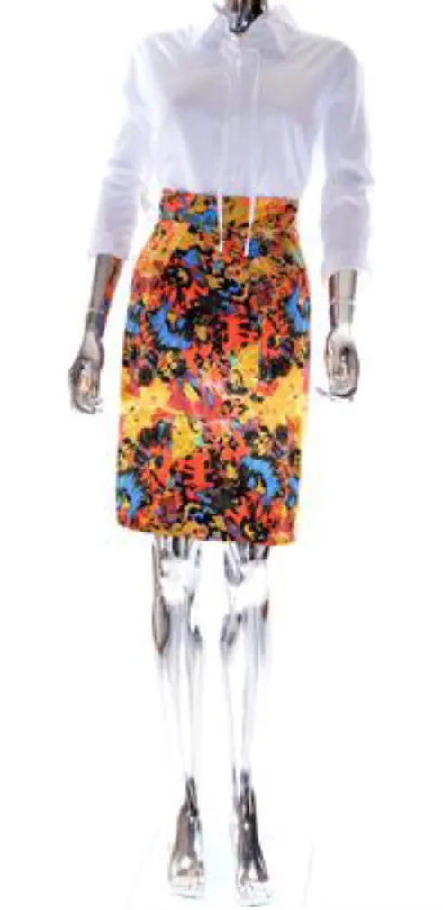 Tracy Reese colorful‎ print high waisted midi knee lengthskirt women's size XS Yellow - $84 - From Diana