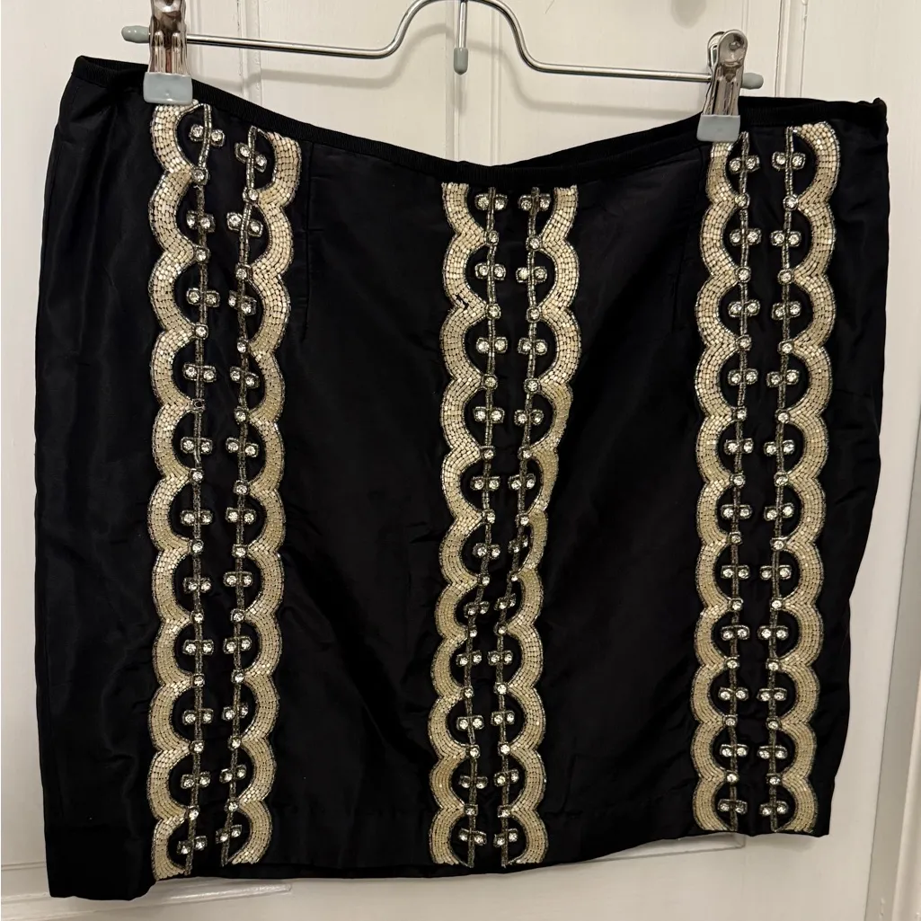 TRACY REESE Women’s Black 100% Silk Embellished Beaded Rhinestone Mini Skirt Size XL - $39 - From Jessica