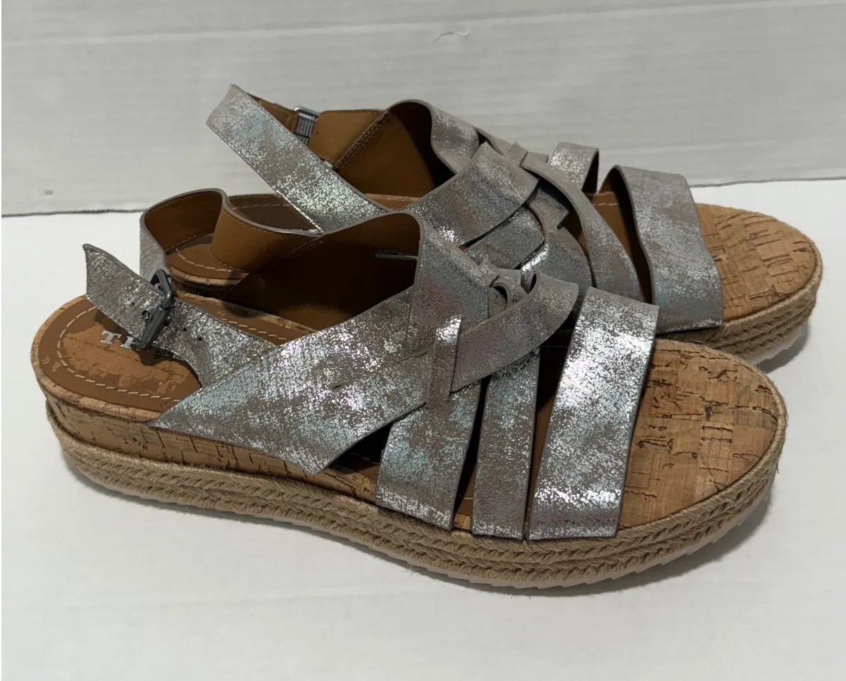 Trask Sandals Cork Wedge Strappy Metallic Silver Casual Shoes Women's 11M Condition: very good cond... Show more