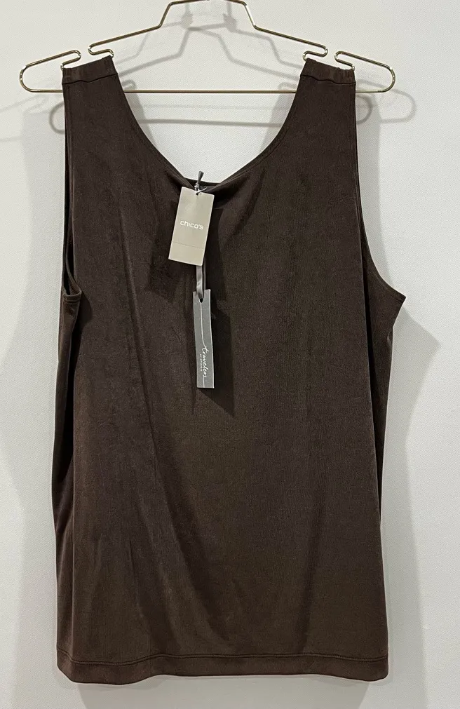 New, Travelers essential Tank Chico's Dark Roast Brown Top Size 3 (XL) Sleeveless Crew-Neck, Slinky... Show more