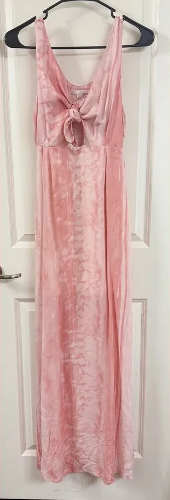 Elegant pink maxi dress. Features a bow detail at the front. Sleeveless design. A daring front cutout and knotted bustline dial up the romance of a tie-dyed maxi dress cut from sleek, lustrous fabric. 58" length Hidden side-zip closure V-neck 100% cupro Machine wash, tumble dry Imported