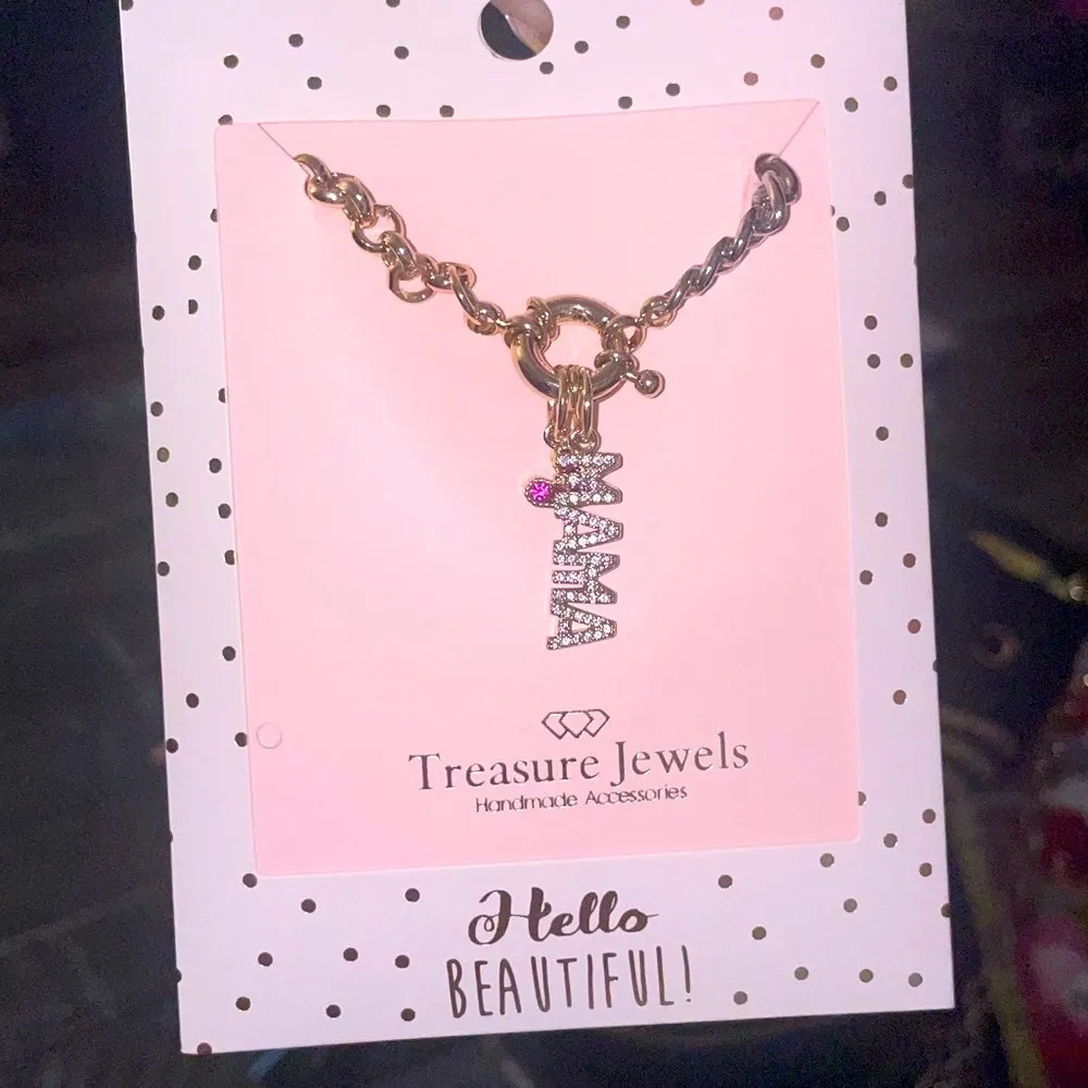 Celebrate motherhood with the Treasure Jewels 'Mama' Charm Necklace. This elegant piece features a two-tone gold & silver chain and a removable sparkling pink heart and mama charm. Versatile styling makes this necklace a staple to your jewelry collection. New with tags Purchased from WR Boutique Silver, Gold Chain Includes two charms Option to remove charms or add your own 16” with 3” extender Tags: Girly, Preppy, Mother, Gift, Accessories, Mixed Metals,