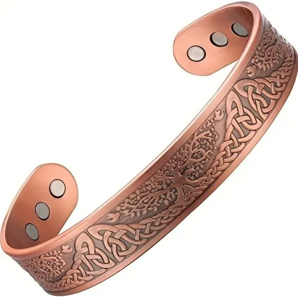 Pure Copper Magnetic Bracelet - Men Women Arthritis Therapy Pain Relieve Adjustable Magnetic Health Bracelets believe to heal your body naturally, improve blood circulation and relieve fatigue. 99.99% Pure Copper High Quality Magnets One size fits all Size: 7.5 Inch X 15mm Open Cuff Design makes it easy to adjust with any size