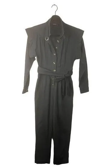 Love the collar and the sleeves on this unique jumpsuit side pockets 100% cotton Chic and casual Excellent condition, no flaws Ships same or next business day Chic, one piece, pleated, front buttons,